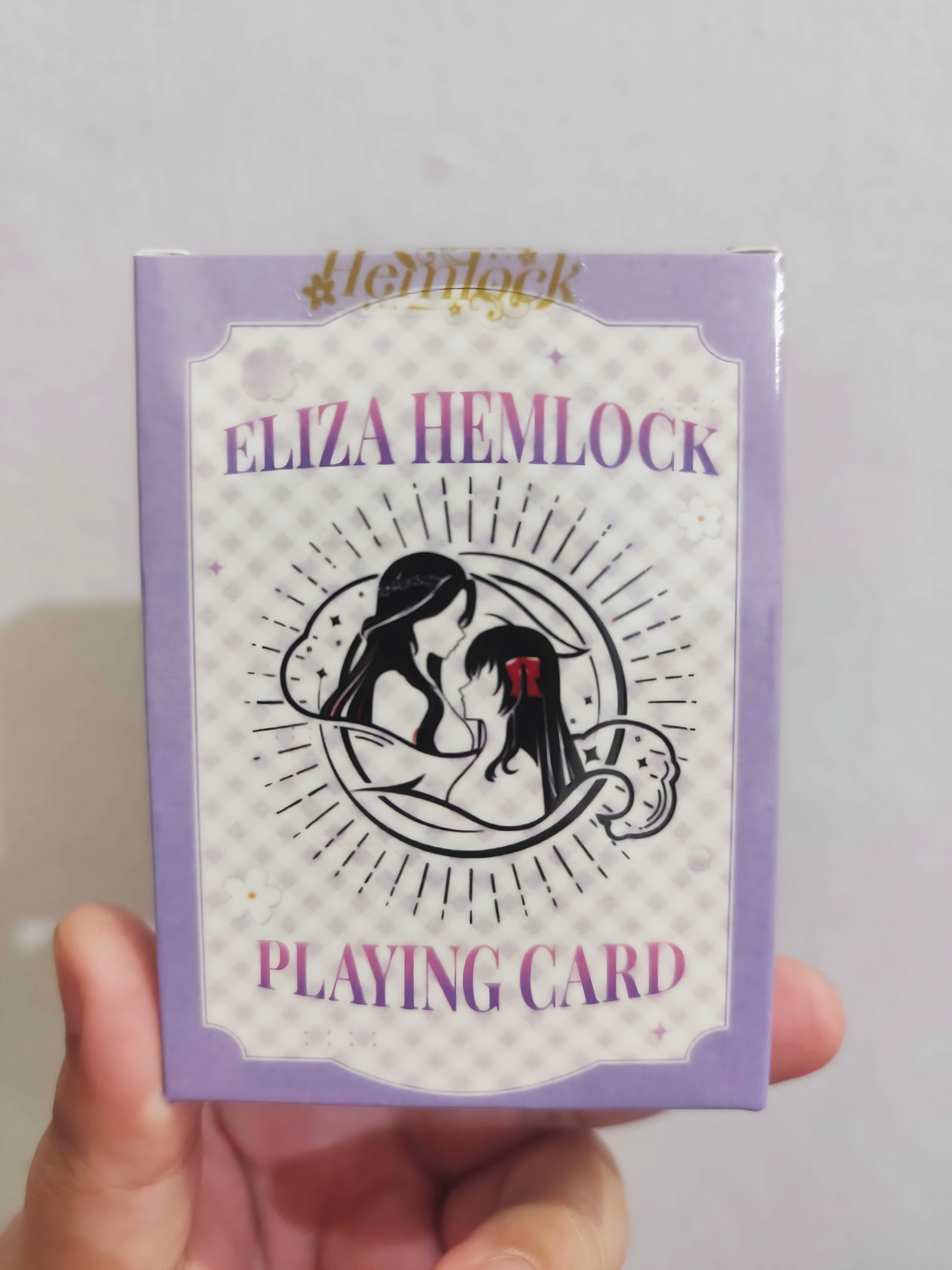 Tepuk nyamuk, hantu, capsa, cangkul; mainkan permainan kartu favoritmu dengan Kartu Remi Eliza Hemlock! Setiap kartu dirancang penuh cinta dan kasih sayang oleh Eliza sendiri! Dapatkan kartu remi ekslusif ini sebelum kehabisan ♠️!